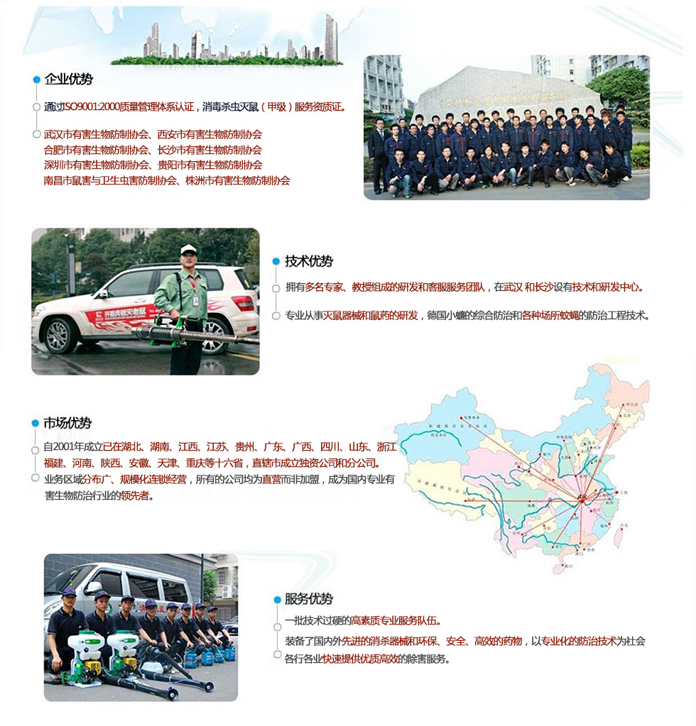 我們堅持“誠信、高效、安全、環保”的服務宗旨,所用器械均為世界優質產品,所用藥物均系國家藥檢部門和衛生防疫部門批準的安全、低毒的城市衛生用藥,并根據具體作業環境和防治對象情況變化,制定具體防制方案,保證優越的防治效果和人體安全。